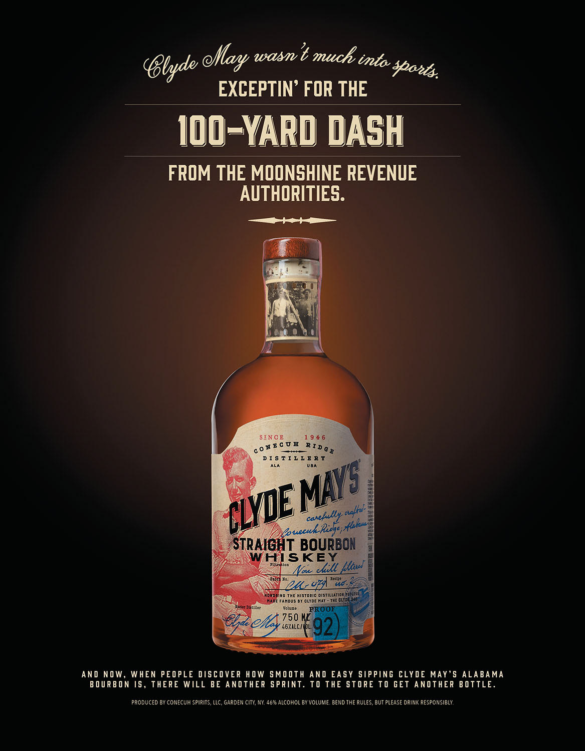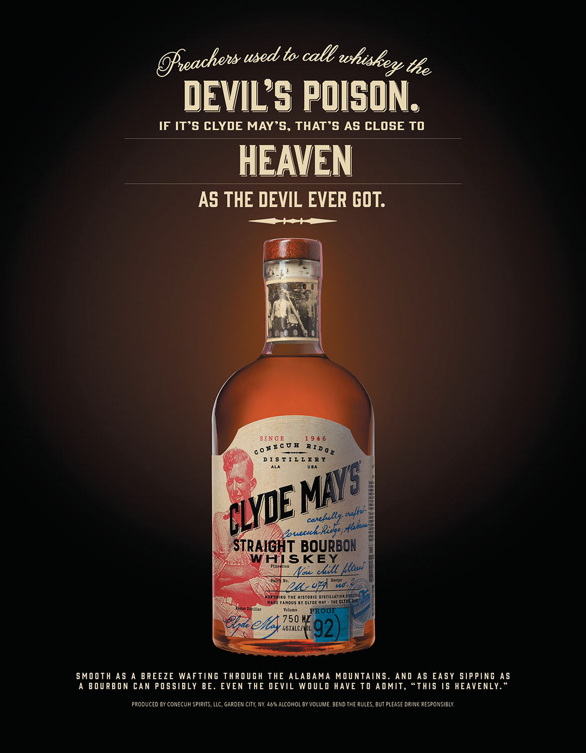 The assignment was to drive interest in Clyde May’s Straight Bourbon Whiskey by telling the true story of moonshiner Clyde May and his passion and dedication to the craft. Our first ad for the brand was for the Sports Illustrated Swimsuit issue.